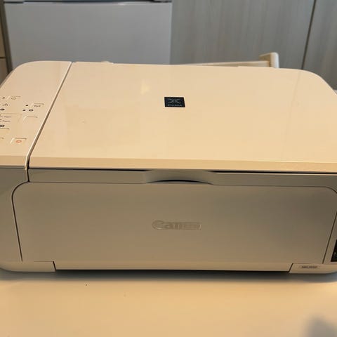 Canon multifunction printer for home use or a small office. The device has a flatbed scanner under the lid and rear paper feed. The control panel and basic functions are located on the left side of the printer. Suitable for printing, copying, and scanning documents and photos.