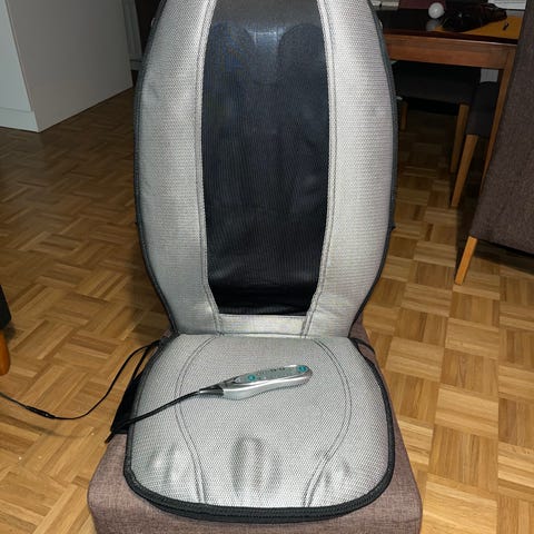 OBH Nordica hierontaistuin. On vanhempi malli, mutta toimii. Selkä- ja niskahierontalaite, joka asetetaan tavallisen tuolin tai sohvan päälle. Laitteessa on erilliset hieronta-alueet niskalle, ylä- ja alaselälle sekä vyötärölle ja istuinosalle. Kauko-ohjaimesta voi valita eri hierontaohjelmia, säätää hieronnan voimakkuutta ja kohdistaa hieronnan halutulle alueelle. Tuolissa verkkovirtalähde ja johdot laitteen käyttöä varten.