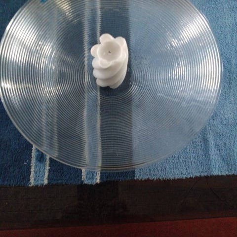 Nuutajärven lasi valmistama pieni kaadin, jossa pyöreä muotoilu ja kaatimen nokka muotoiltu siten, että jääpala ei karkaa lasiin. Tilavuus noin 0.5 ltr.