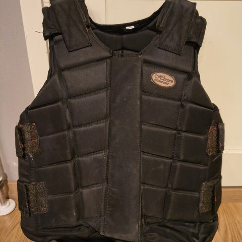 Myydään lasten Wembley-turvaliivi. Jämäkkä liivi, kankaan sauma takaa alareunasta revennyt, katso kuva. Selkäpuolen pituus olkapäästä liivin alaosaan noin 44 cm, etuosan noin 38 cm.