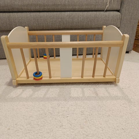 Myydään valkoinen, tarroilla koristeltu nuken sänky. Pohjan saa kahteen eri korkeuteen. Täydellisen kokoinen Baby born nukelle. Pientä käytön jälkeä on, mutta vielä kelpaa leikkeihin.