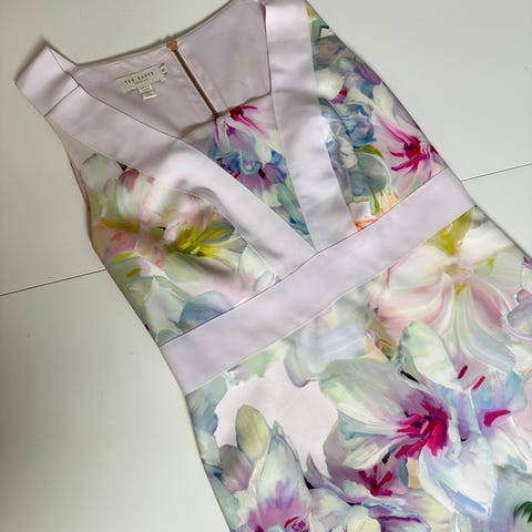 TED BAKER Kukkakuvioinen, vartalonmyötäinen midimekko