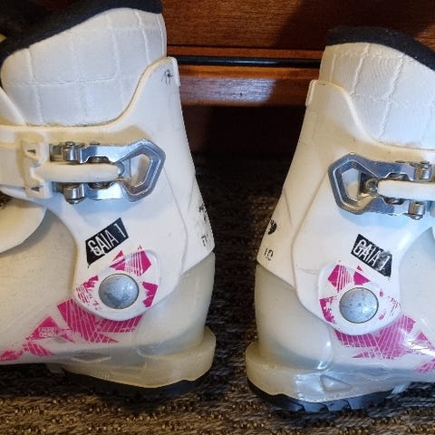 Käytön jäljet näkyvät selvästi, mutta edelleen hienosti toimivat pienelle laskettelijalle (meillä noin 2-4v)