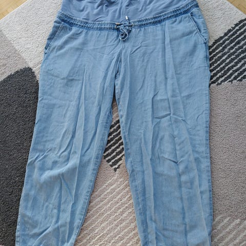 Noppies todella tummansiniset siistit äitiyshousut koossa XL. Suoran malliset ja napakkaa collegemaista materiaalia olevat. Taskut sivuilla, vyölenkit ja säädettävä vyötärö naruilla, pehmeä vatsakaistale, valetakatasku. Kunto on todella hyvä housuissa, pesulappu kulunut.