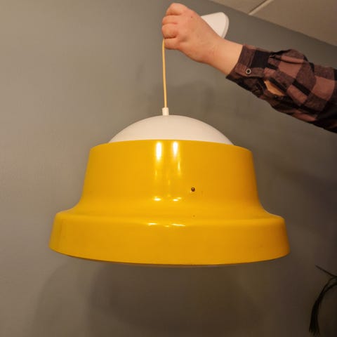 Myydään keltainen, metallinen kattovalaisin 60-70-luvulta.
