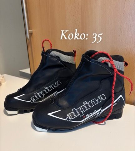 Kuvien mukaiset kovia kisoja nähneet sukset ja monot. Sukset vaativat voitelun. Erikseen myytynä 70€/sukset ja 30€/monot. Yhdessä 85€.