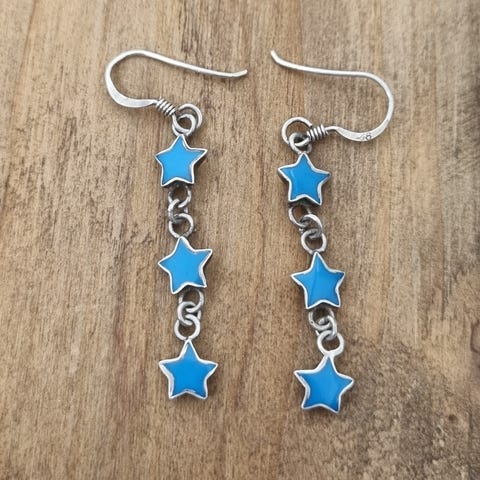Ur&Pennistä ostetut korvakorut, jossa kaksi tähteä. Materiaali sterling-hopeaa 925 ja osittain ruusukullattu.