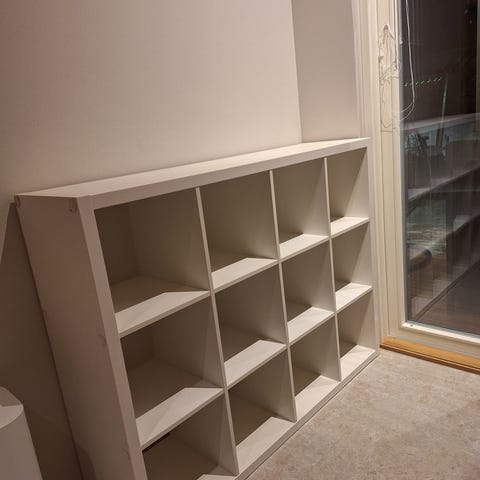 Myydään hyväkuntoinen Kallax hylly 77*77cm, mustanruskea. Pieni jälki yhdessä kulmassa (kuvassa 2).