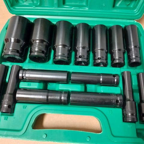 Hylsyt jopa 14mm asti. Sisältö näkyy kuvissa.