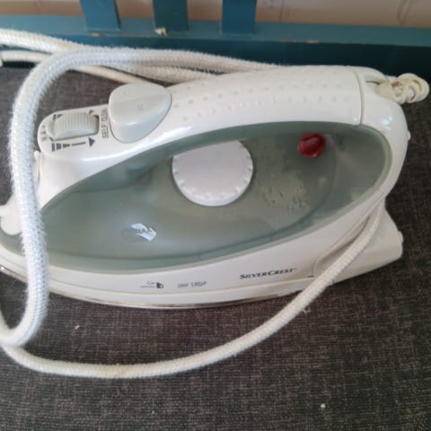 Severin höyrysilitysrauta valkoinen–sininen. Johdollinen silitysrauta, jossa höyrytoiminto ja höyryaukollinen pohjalevy.
