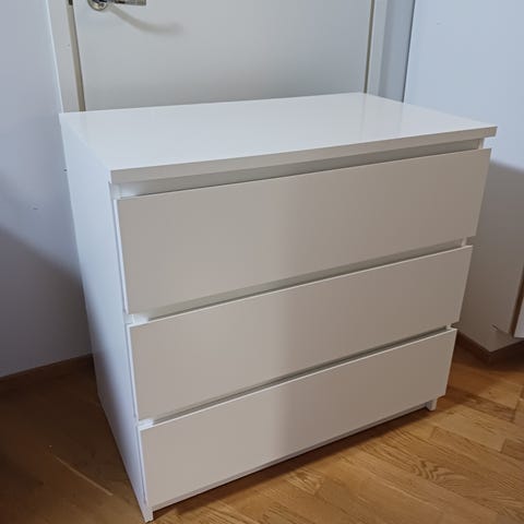 Myydään kolmen vetolaatikon Malm lipasto. Lipasto on hyvässä kunnossa, mutta ihan pientä käytön jälkeä on kulmissa ja reunoissa. Muutoin täysin ehjä ja siisti. Lipaston mitat noin korkeus 77cm, leveys 80cm ja syvyys 48cm. Lipasto sijaitsee Toijalassa.