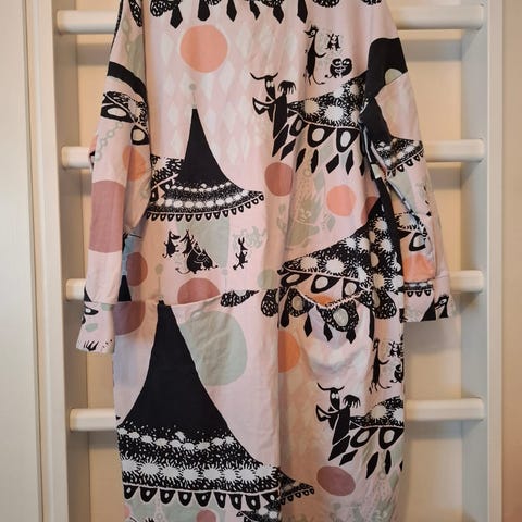 Näyttävä Papun paitamekko muumikuviolla. Kai-kai n. 65 olka-helma n. 102.