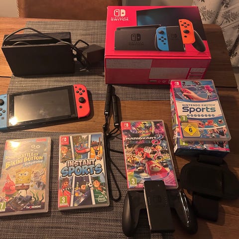 Hyväkuntoinen Nintendo Switch, pelattu ainoastaan telakassa TV:ssä. Mukaan kaikki mitä tarvitsee että pääsee pelaamaan (HDMI ja virtakaapeli) + Kaikki paketin mukana tulleet ohjaimet.