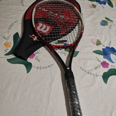 Wilson Impact Titanium -tennismaila ja lisää Wilson Enforcer -tennismaila..