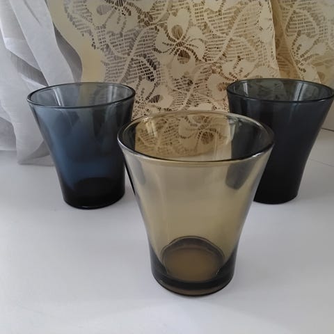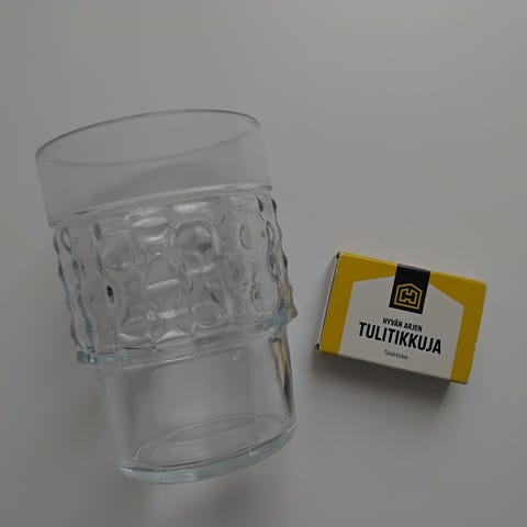 Erkkitapio Siiroisen Riihimäen Lasille suunnittelemia juomalasit.