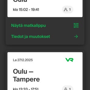 Yöjunaliput Tampere-Kolari 7.3.2026