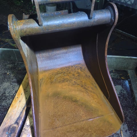 Kuokkakauha NTP 20. Jatkettu huuli. Leveys: 129cm. Syvyys: 167cm. Leveys ylhäältä: 88cm. Kiinnityksen yläpintaan: 115cm. Paino n. 800kg. Huuleen on hitsattu lisää hardoksia n.200kg. Hitsaajan työ 10/10.