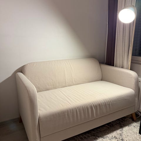 Myynnissä Ikean Linanäs kahden istuttava sohva. Kaksi vuotta vanha, uutena ostettu, ei eläintalous. Vähällä käytöllä ollut, pesty juuri Kärcher imurilla. Mahtuu henkilöautoon! Ei kuljetus mahdollisuutta.