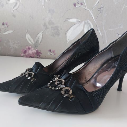 Mukavat ja tyylikkäät mustat korkokengät kevään juhliin. Koko 38. Yläosa nahkaa, pohja ja korko kumia. Todella mukavat jalassa ja käytössä. Vähälle käytölle jääneet!