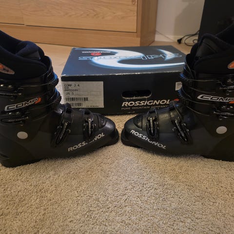 Rossignol laskettelumonot, jr 24,5Väri musta. Monossa kolme solkea. Käytönjälkiä näkyy.