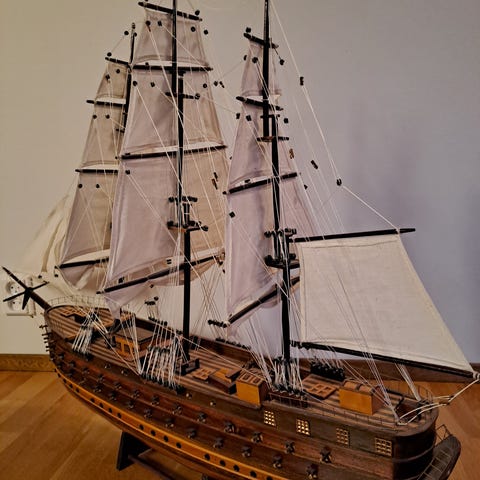 Muuta: Kyseessä on purjelaivan pienoismalli dioraamassa, joka esittää kolmimastoista alusta merellä lasivitriinissä. Tällaiset esineet ovat tyypillisesti 1800-luvun lopun merimieskäsitöitä, jotka tunnetaan myös nimellä ”sailor-made”. Tämä nimenomainen dioraama on erittäin patinoitunut ja harvinainen tapaus 1800-luvun lopusta. Poikkeuksellisen hienoa käsityötä, yksityiskohtaisesti ja laadukkaasti valmistettu kokonaisuus. Takana kiinnikkeet seinäkiinnitystä varten. Hyvin säilyneet 1800-luvun dioraamat ovat harvinaisia. ja tämän ikäisiä vastaavia kohteita ei löydä kovinkaan helpolla, joten tässä on hieno mahdollisuus hankki kohde esim. omaan merelliseen miljööseen.