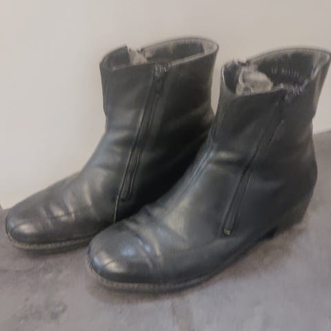 Nahkatakki, väri musta, kokolapussa lukee 50. Mitta kainalosta kainaloon noin 52 cm. Sisällä tikattu vuori, joka on keinokuitua. Takissa on useita repeämiä, mutta uskon, että ne on mahdollista korjata. Ei välttämättä naisten malli, vaikka luokituksessa niin lukeekin. Nouto Nastolan Kirkonkylältä.