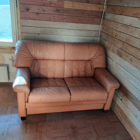 Lahjoitetaan kuvan mukainen Natuzzi -merkkinen valkoinen nahkasohva. Hyvä edelleen istua, mutta eletty elämä näkyy. On kulumaa, toisessa päässä reilusti kissan raapimisesta jälkiä (ks. lähikuva). Istuintyynyt kiinteät, selkätyynyt saa irti. Katso. mitat 2. kuvasta.