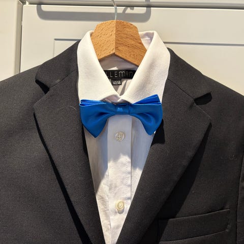 Puvun takki ja valkoinen kauluspaita 140cm, housut 146cm
