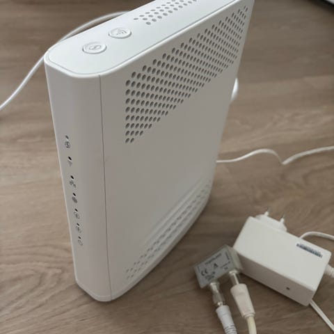 Myydään kuvan modeemi virtalähteen ja kaapelin kera.