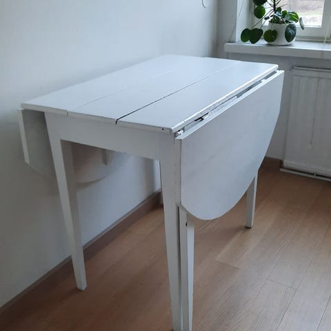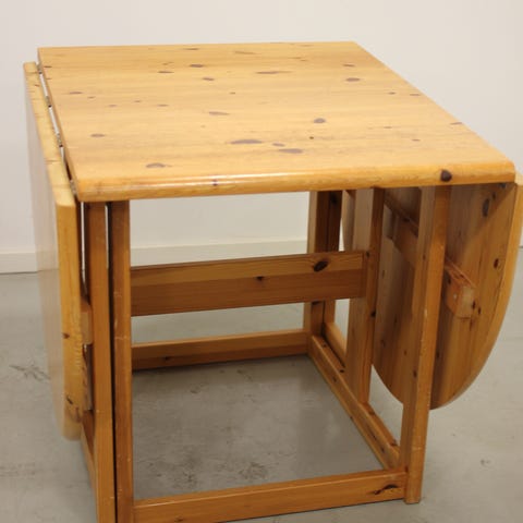 Myydään vanha puinen klaffipöytä. Suhteellinen hyväkuntoinen ikäisekseen. Taittuvat Pöytälevyt saa myös irti. Helppo avata ja sulkea. Koko avattuna korkeus 72cm, leveys 80cm, pituus 158cm.