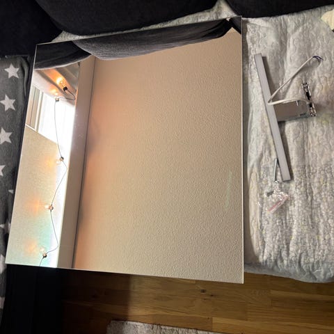 LED-valopeili kylpyhuoneeseen. Suorakaiteen muotoinen peili, jonka taakse kiinnitetty LED-nauhat. Mukana LED-driverit (IP67) ja johdot. L-koukut saa mukaan.