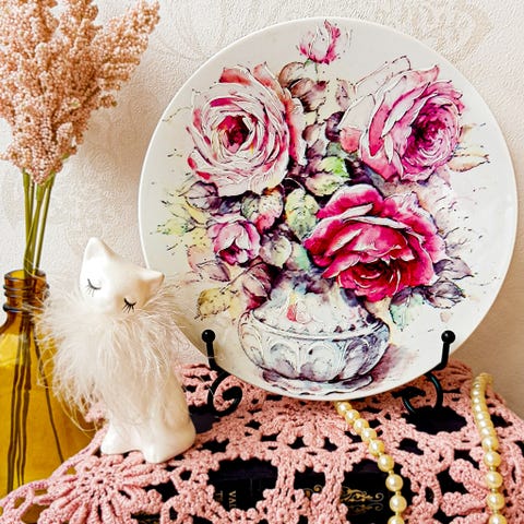 Tšekkiläisen firman Floribundan valmistama seinälautanen Roses and Peonies. Malli kopioitu vanhasta vesivärimaalauksesta. Lautasen kunto on erinomainen. Halkaisija 19,5 cm.