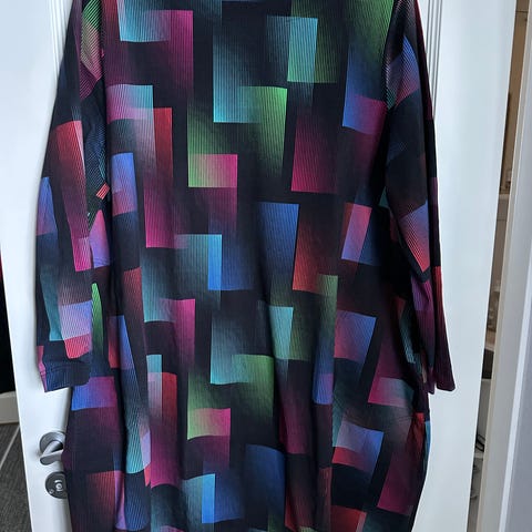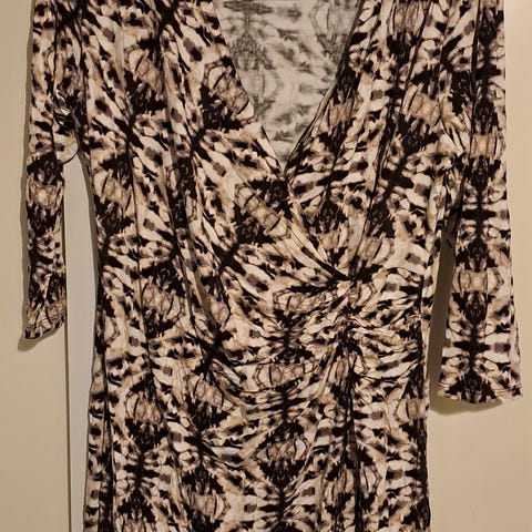 Musta /oranssi /vaalea tunika kukkakuviolla .Pituus 80cm. Siisti vähän käytetty. 100% polyesteri elastaania 6% .Nouto Kupittaa