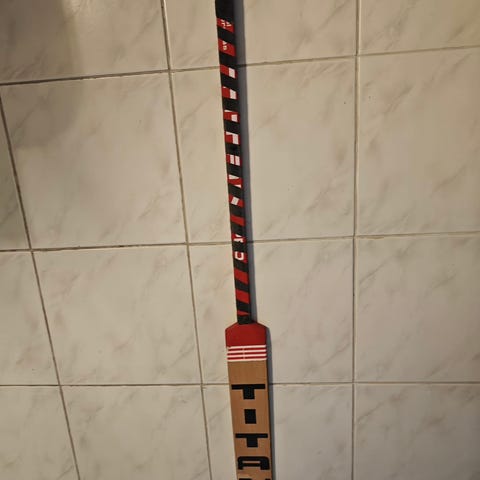 Niklas Bäckströmin puinen maalivahdin maila. Ajalta jolloin Bäckströmin seura oli SaiPa, eli 2000-2001
