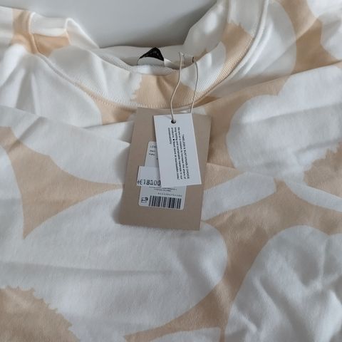 Marimekko Leiot Unikko-college, koko M, sopii myös L kokoiselle, 2 kuvassa on päällä XL kokoisella, jolloin hihat jo sitten lyhyet ja paita vähän liian lyhyt. Beige/nude pohjaväri, jossa edessä suuri vaaleanpunainen/pinkki glitter unikko.