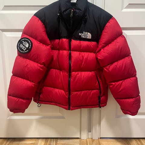 The North Face Retro Nuptse miesten talvitakki, koko M. Musta, paksusti untuvatäytteinen malli, jossa 700 merkintä hihassa. Oikeanpuoleisen taskun kohdalla paikka kyljessä 4x2cm pieni paikka. Muutoin siisti kunto.