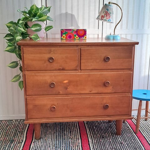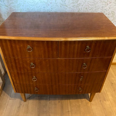 2 vintage lipastoa, 4 vetolaatikkoa per lipasto. Tiikkiviilua ja koivua. 2kpl myytävänä.