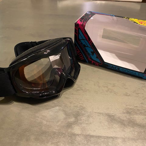 Käyttämättömät Fly Racing Zone Comp Pink ajolasit tummalla / peilaavalla linssillä. Hihnassa sisäpuolella silikonipinta, joka estää kypärän päällä liukumisen. Mukaan säilytyspussi ja pakkaus kuvien mukaisesti.