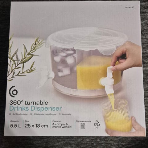 Mitat: korkeus 48cm, pohjan halkaisija 13,5cm & letkun pituus kahvoineen 55cm.