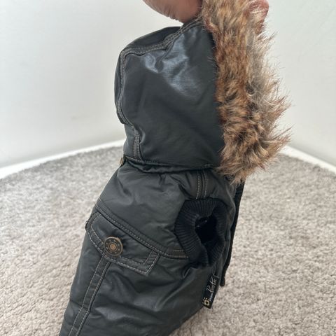 Talvitakki koiralle. Hurtta-merkkinen. Selkäosan pituus n. 45cm. Kulumaa siellä suun täällä. Vain nouto.