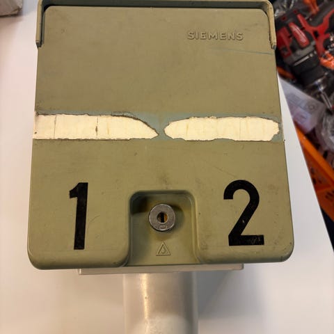Alppitukun lämmitystolppa kahdella pistorasialla, sulakkeilla, vikavirtasuojalla ja ajastimilla.