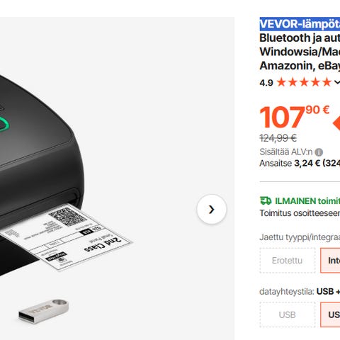Uusi lämpökuittitulostin Star TSP143IIU+ termokuittitulostin