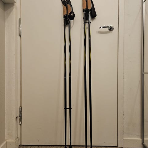 Start Flow Grey -kävelysauvat, pituus 120 cm. Sauvoissa on musta/harmaa varsi, ergonomiset korkkikahvat ja säädettävät rannelenkit. Kärjissä on kovametallipiikit sekä irrotettavat kumitassut kävelyyn kovilla alustoilla. Soveltuvat sauvakävelyyn käyttäjälle, jonka pituus on noin 170-180 cm (valmistajan taulukon mukaan 175 cm). Voin tarvittaessa lyhentää sauvoja 5-10 cm. Minulla on sauvoja 6 paria.