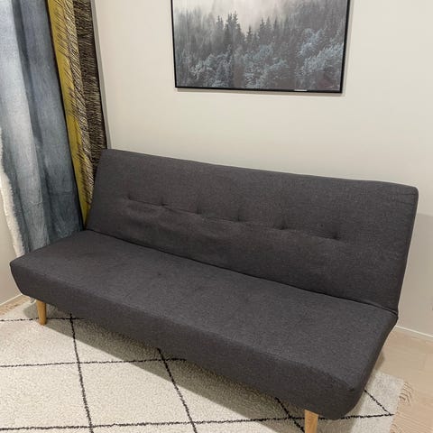 Noin 190x80cm harmaa vuodesohva. Hyvässä kunnossa.