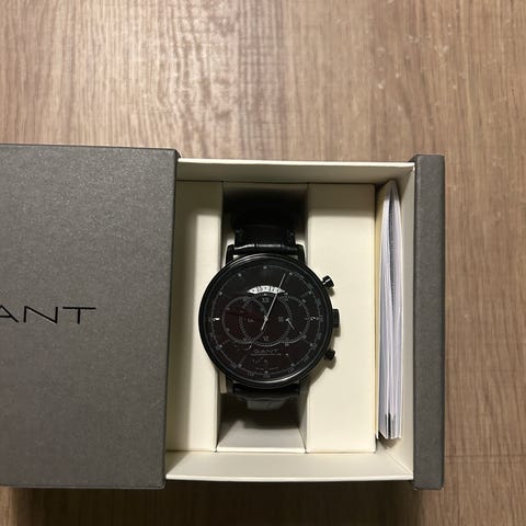 Erittäin hyväkuntoinen Gant miesten rannekello. Kellossa on teräsranneke ja tumma kellotaulu. Rannekkeessa on taittosolki ja pidennyspaloja tulee mukaan. Lasi naarmuton ja teräksessä korkeintaan satunnaisia mikronaarmuja. Paristo vaihdettu 3.1.2026.