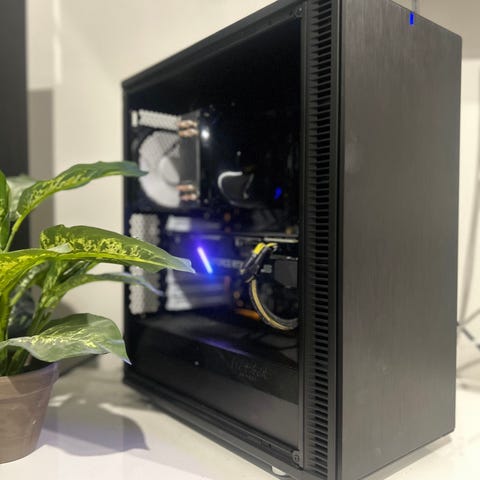 tietokoneen osat kasattu minimalistiseen laatu fractal koteloon joka on ääntä vaimentava sekä hyvällä ilmakierrolla.