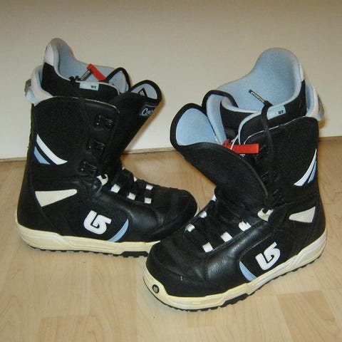 Laadukkaat ja nykyaikaiset Burtonin lumilautakengät (Burton on yksi arvostetuimpia lumilautailu kamppeiden valmistajia). Kokomerkintä on 42 1/2, kenkien sisämitta on 27.50 cm. Kengissä kätevät kaksois-boa-nauhat eli edessä olevan boa-nauhoituksen lisäksi kengän sivulla oleva boanauha-mekanismi: helppo pukea / ottaa pois jaloista (lisäksi sivulla olevilla boa-kiristyksillä saa "hienosäädettyä" kengän jalkaan istuvuutta). Ihan muuten ehjät kengät mutta ainut miinus seikka on se että lumilautasiteet jättäneet painauma jäljet kummankin kengän ulkopinnoille (ihan kengän alaosassa nilkan kohdissa), kts. painaumista lähikuvat, painaumilla ei mitään vaikutusta kenkien käyttöön ja lautaillessa nuo kohdat jäävät piiloon siteiden sisälle, otettu kuitenkin hinnassa huomioon). Hienot kengät. Hinta 125 e