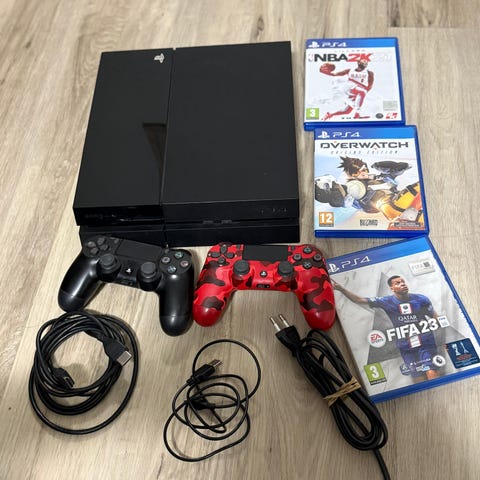 Sony PlayStation 4 pelikonsoli musta. Mukana yksi DualShock 4 -ohjain sekä johtoja, kuten virtajohto ja HDMI-johto kuvien mukaisesti. Lisäksi mukana kolme PS4-peliä levyillä. Konsoli soveltuu PlayStation 4 -pelien pelaamiseen sekä esimerkiksi elokuvien ja muun median toistoon yhteensopivien sovellusten kautta. Väri musta.