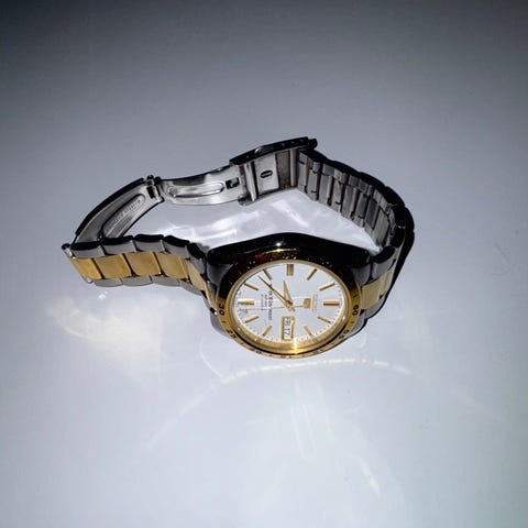 Myytävänä 50 v. lahjaksi saatu Seiko V701-7A20 m rannekello, jota ei käytetty. Takana kaiverrus.