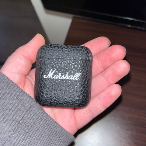 Marshall langattomat nappikuulokkeet musta. Tuotteeseen kuuluu musta latauskotelo, jossa on Marshall-logo ja nahkajäljitelmäpintainen viimeistely, sekä kaksi mustaa nappikuuloketta. Kuulokkeet sopivat esimerkiksi musiikin kuunteluun ja puheluihin yhteensopivien laitteiden kanssa Bluetooth-yhteydellä.